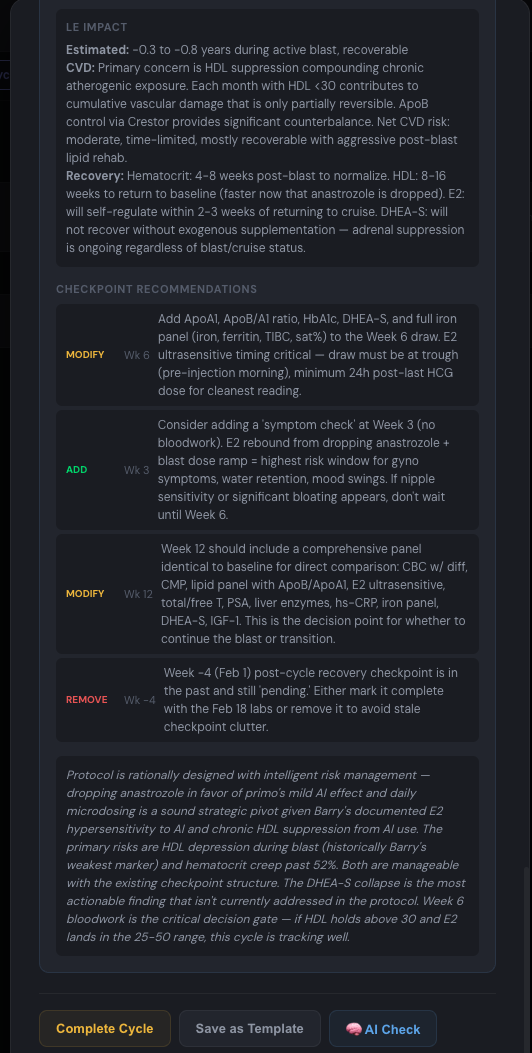 Every protocol change is tracked against your biomarkers.