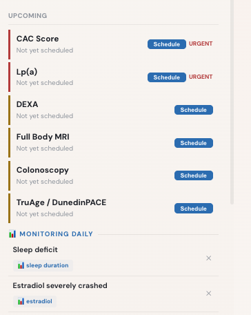 + direct lab uploads · continuous bloodwork ingestion